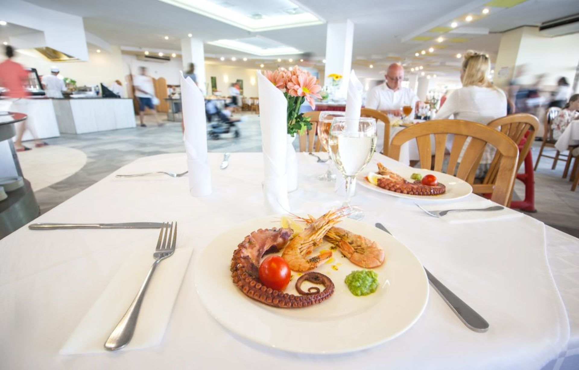 Цената на нощувката включва настаняване в комфортна стая, изхранване All Inclusive с три хранения на бюфет и напитки, достъп до външни басейни, чадъри и шезлонги, детски басейн и площадка, както и участие в анимационни и спортни програми за възрастни и деца. Wi‑Fi е включен в общите части.