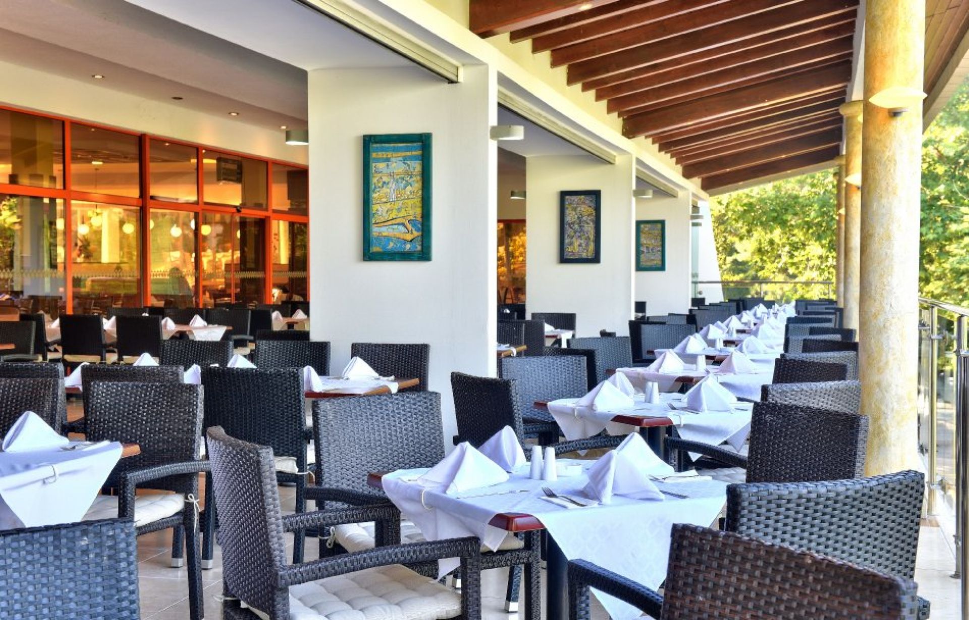 Ресторантът на Хотел Калиакра предлага богато бюфетно изхранване с включени закуска, обяд и вечеря, включително ястия от българската и международната кухня. За семействата има детски бюфети и менюта, а просторната и светла обстановка осигурява комфорт за всички гости.