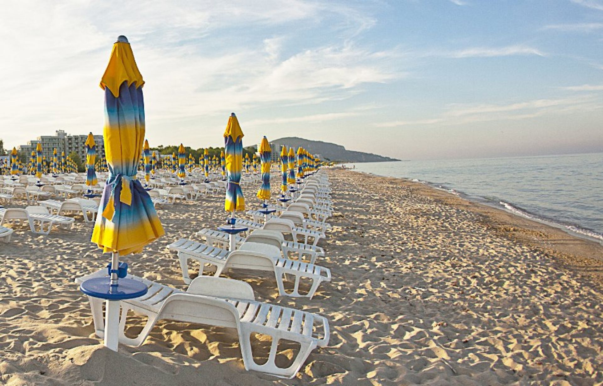 Чадър и 2 шезлонга на плажа (от 3‑та линия) на стая