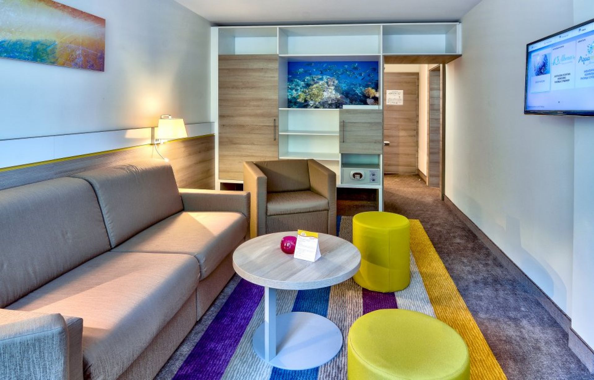 Предлага отворени и закрити басейни, детски басейни и детски клуб, а гостите получават безплатен вход в близкия аквапарк през сезона (ок. 15.06–15.09).