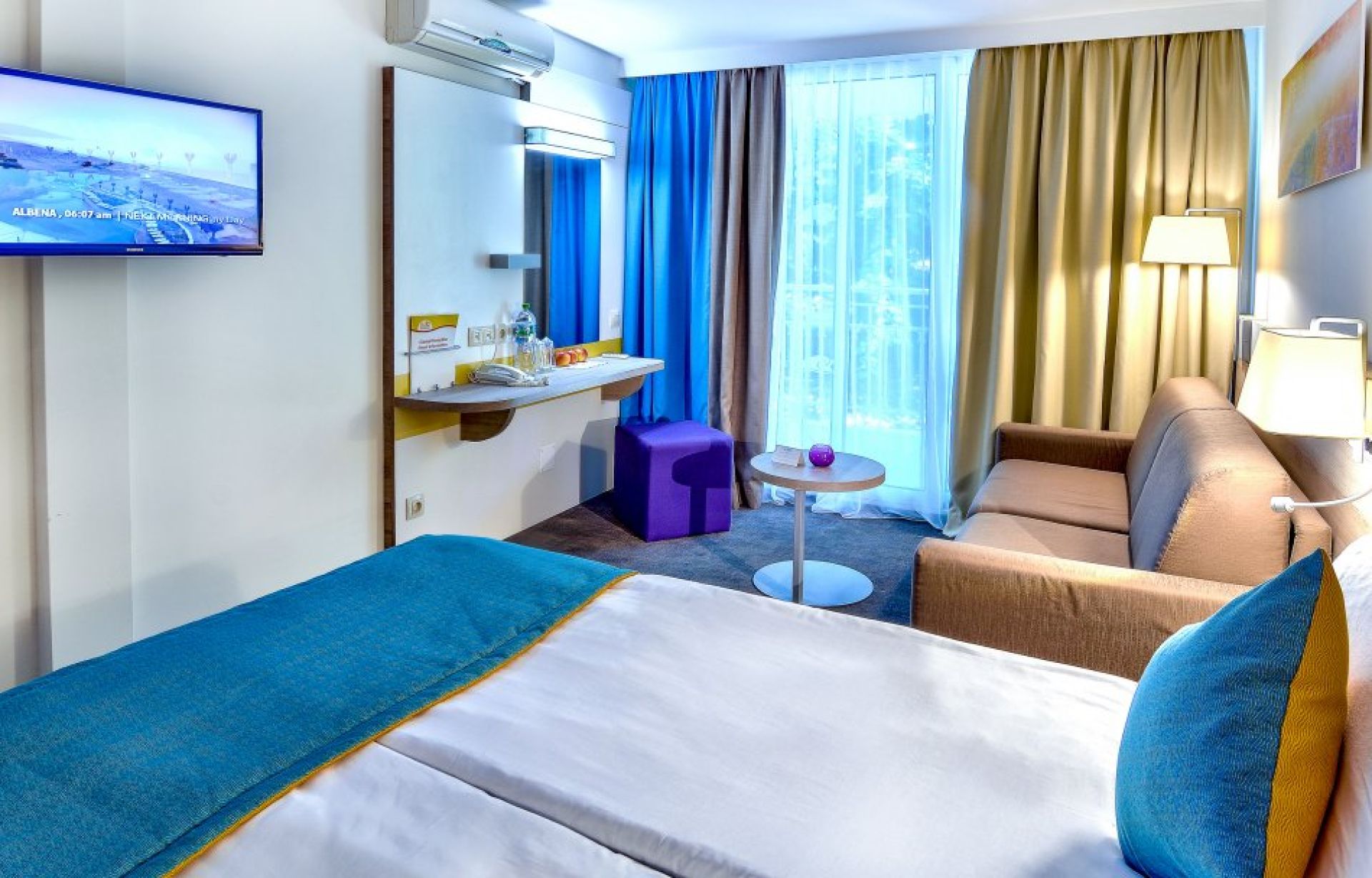 Хотелът е подходящ както за семейства с деца, така и за двойки, които търсят комбинация от релакс, забавления и водни атракции на Черно море.