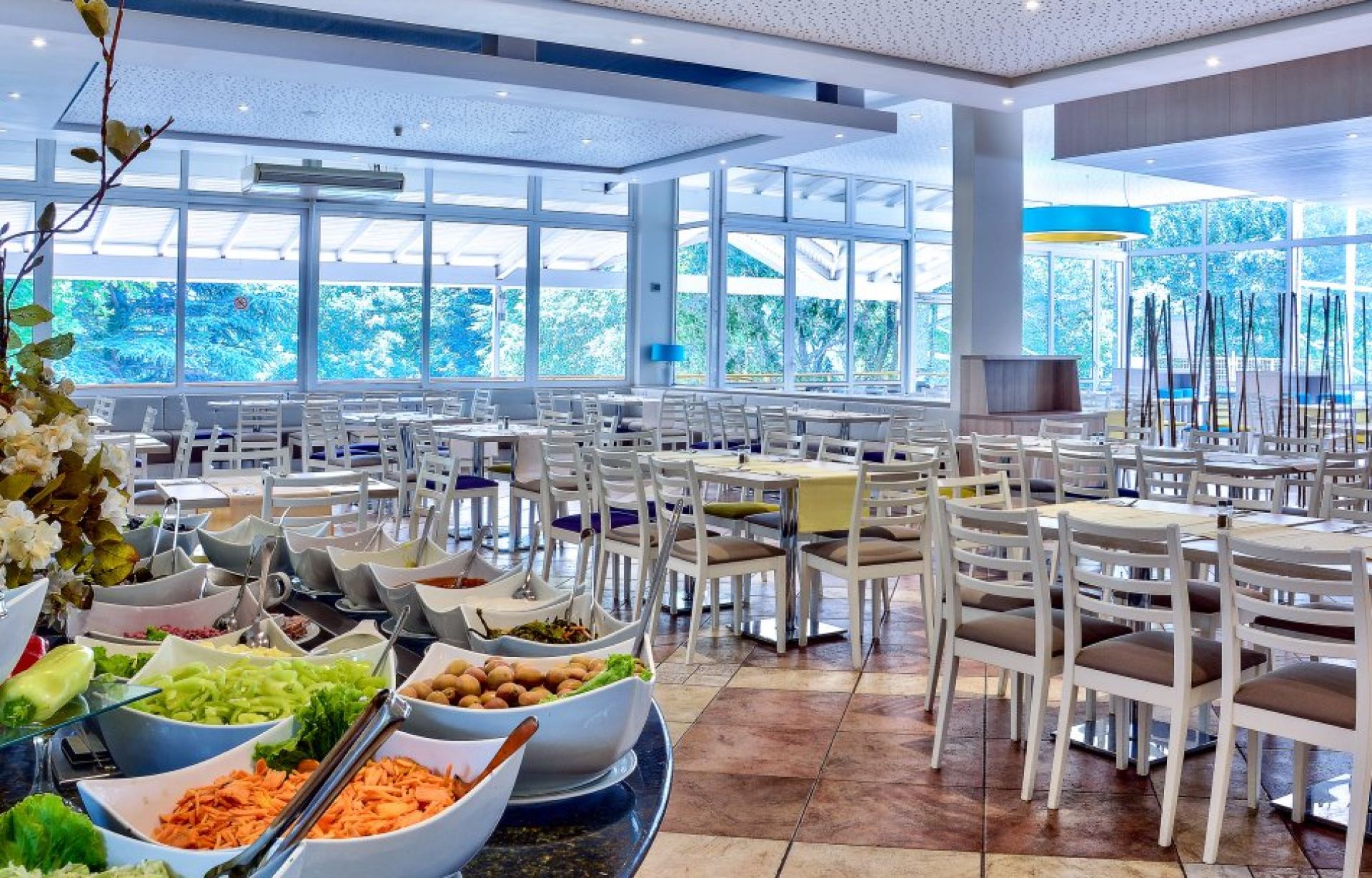 Хотелът разполага с голям основен ресторант на бюфет (шведска маса), където се сервират закуска, обяд и вечеря с разнообразие от международни и местни ястия – салати, топли блюда, десерти, плодове и напитки.