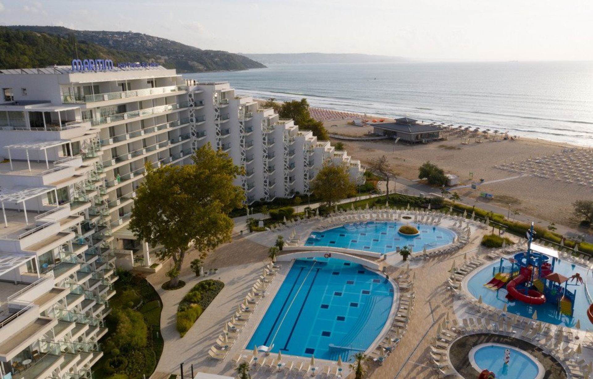 Maritim Hotel Paradise Blue Albena е луксозен 5‑звезден хотел с директен достъп до пясъчния плаж в курорт Албена на Българското Черноморие. Хотелът съчетава изискан комфорт, съвременни удобства и великолепна морска атмосфера, което го прави подходящ както за семейна почивка, така и за романтични или активни ваканции.