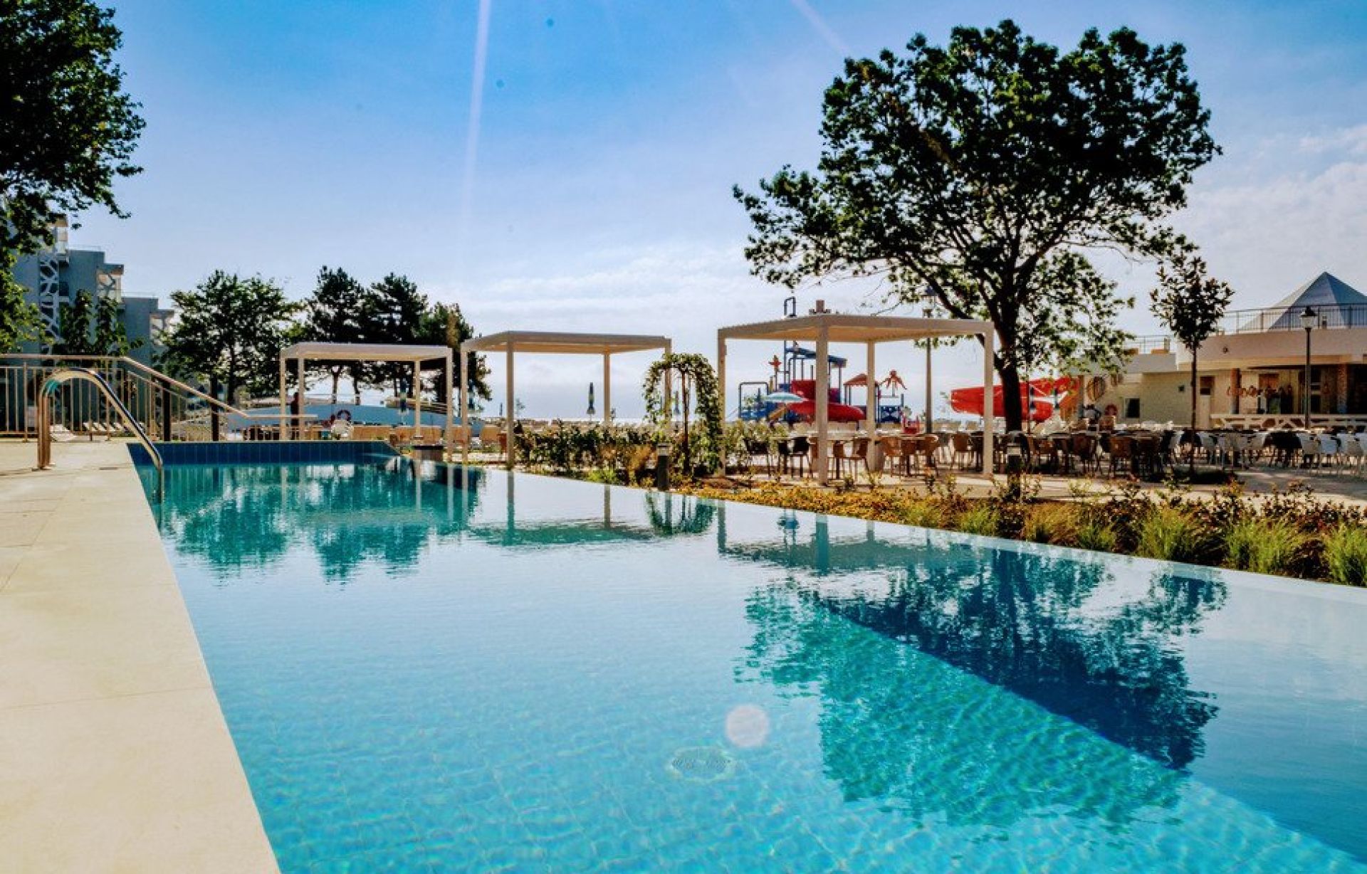 Хотелът предлага също активности за деца, открити и закрити зони за отдих, частен плаж, спортни и развлекателни програми, върху които да се наслаждават гости от всяка възраст.