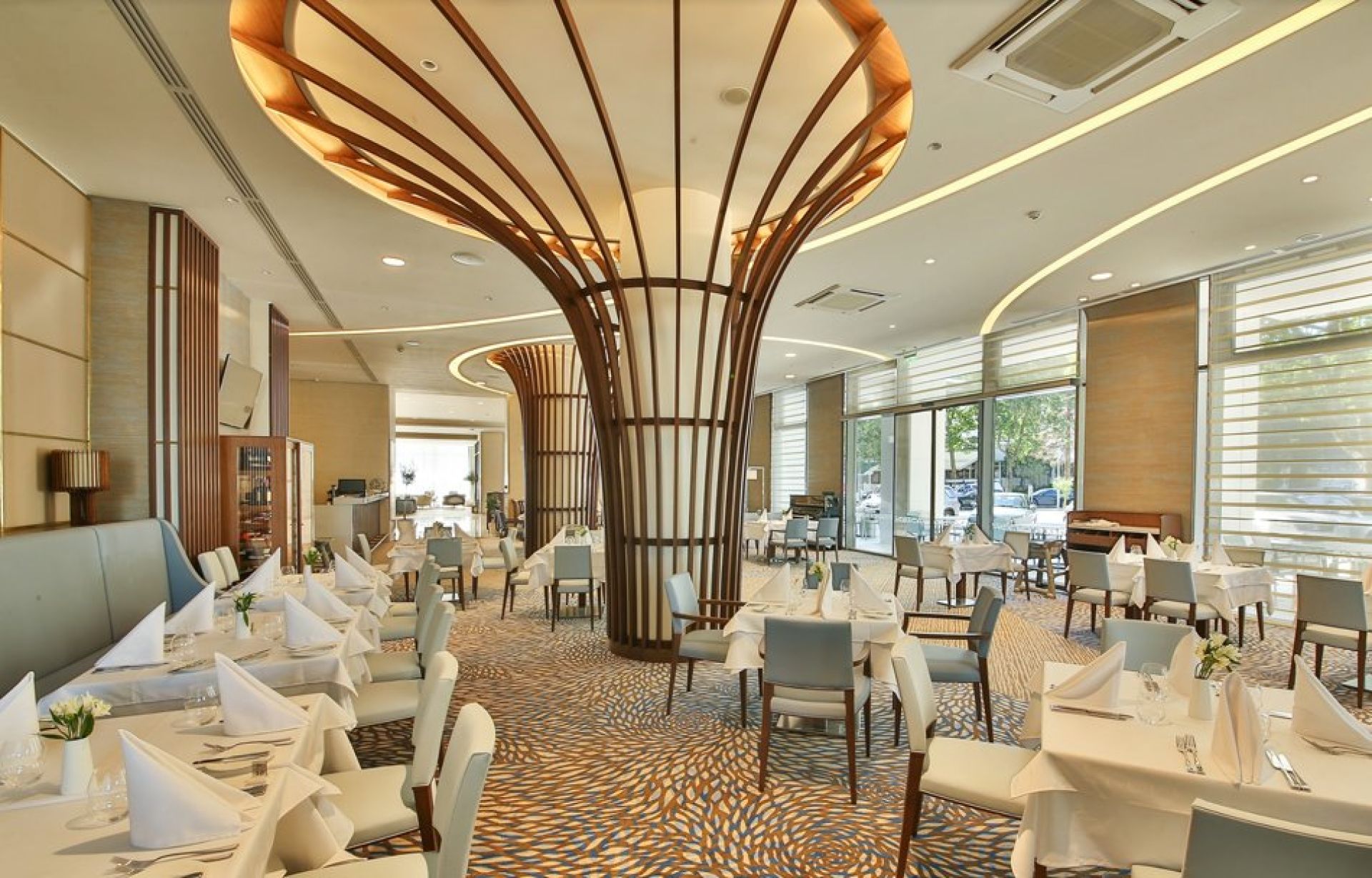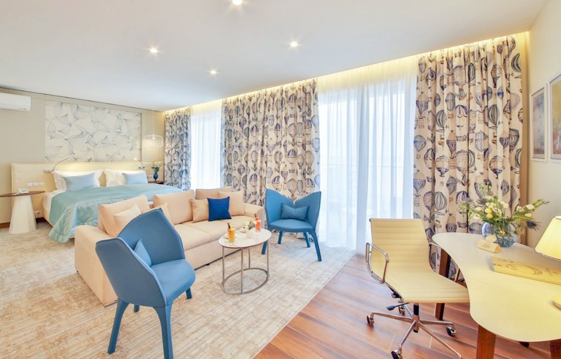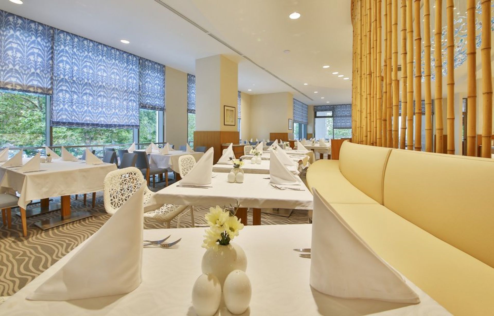 Гостите могат да избират между просторни и стилно обзаведени стаи и апартаменти с гледка към морето или парка. В хотела има няколко ресторанта и бара, където се предлагат богати кулинарни предложения – от гурме закуска до изискани вечерни менюта.