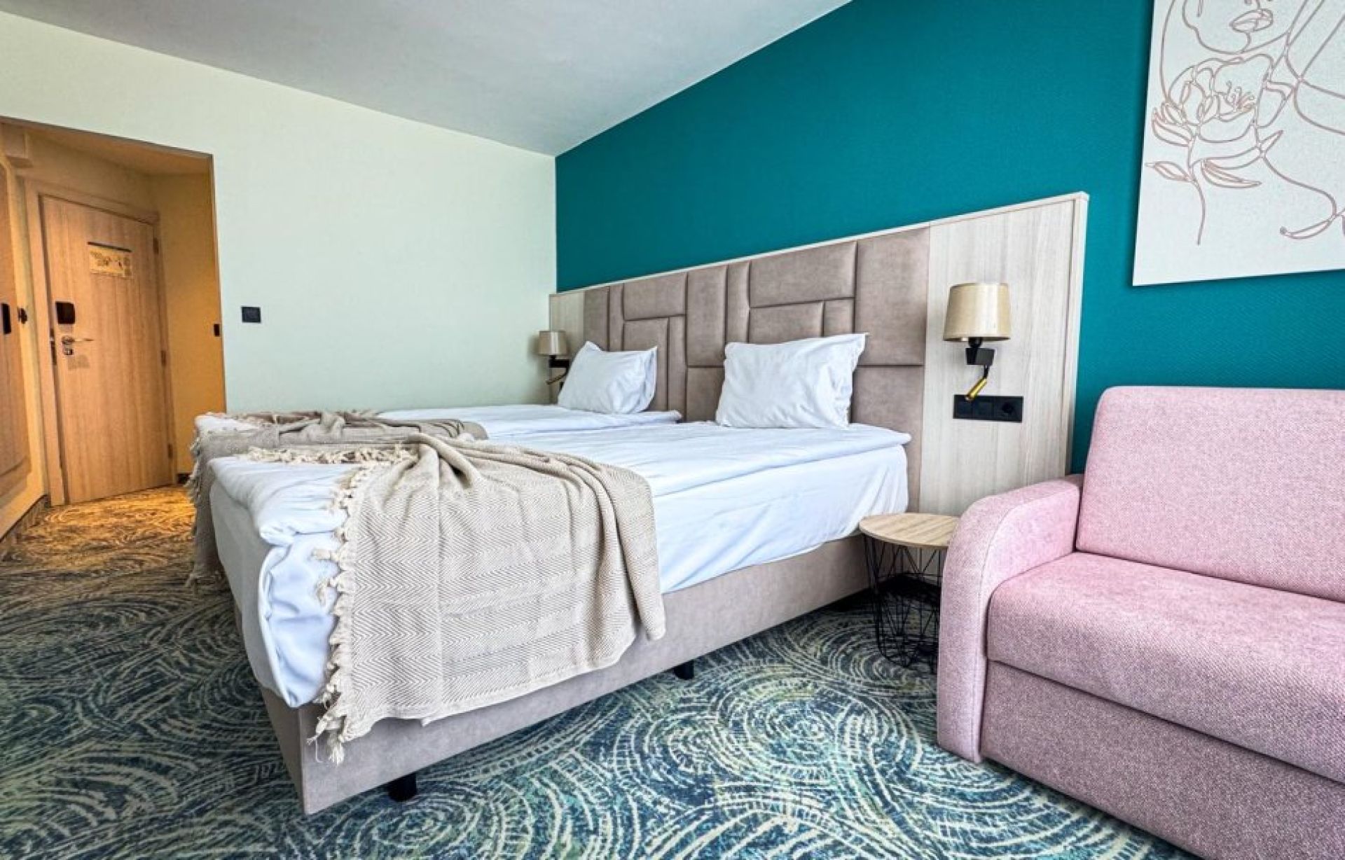 Цената на нощувката включва настаняване в резервираната стая (двойна, студио или апартамент) с модерно оборудване – климатик, телевизор, минибар и сейф. Гостите се възползват от All Inclusive изхранване, което включва закуска, обяд и вечеря на шведска маса с разнообразие от български и международни ястия, както и междинни закуски, плодове, кафе и чай през деня. Локални безалкохолни и алкохолни напитки също са включени в определени часове.