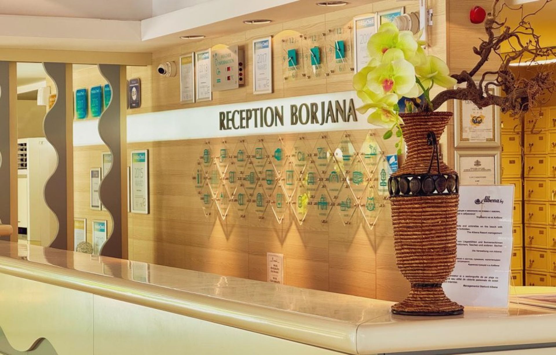 Хотелът е в рамките на морския курорт и е само на няколкостотин метра от главната алея на комплекса и от централните пешеходни зони с магазини, ресторанти и развлечения, което улеснява придвижването до всички основни точки на Албена.