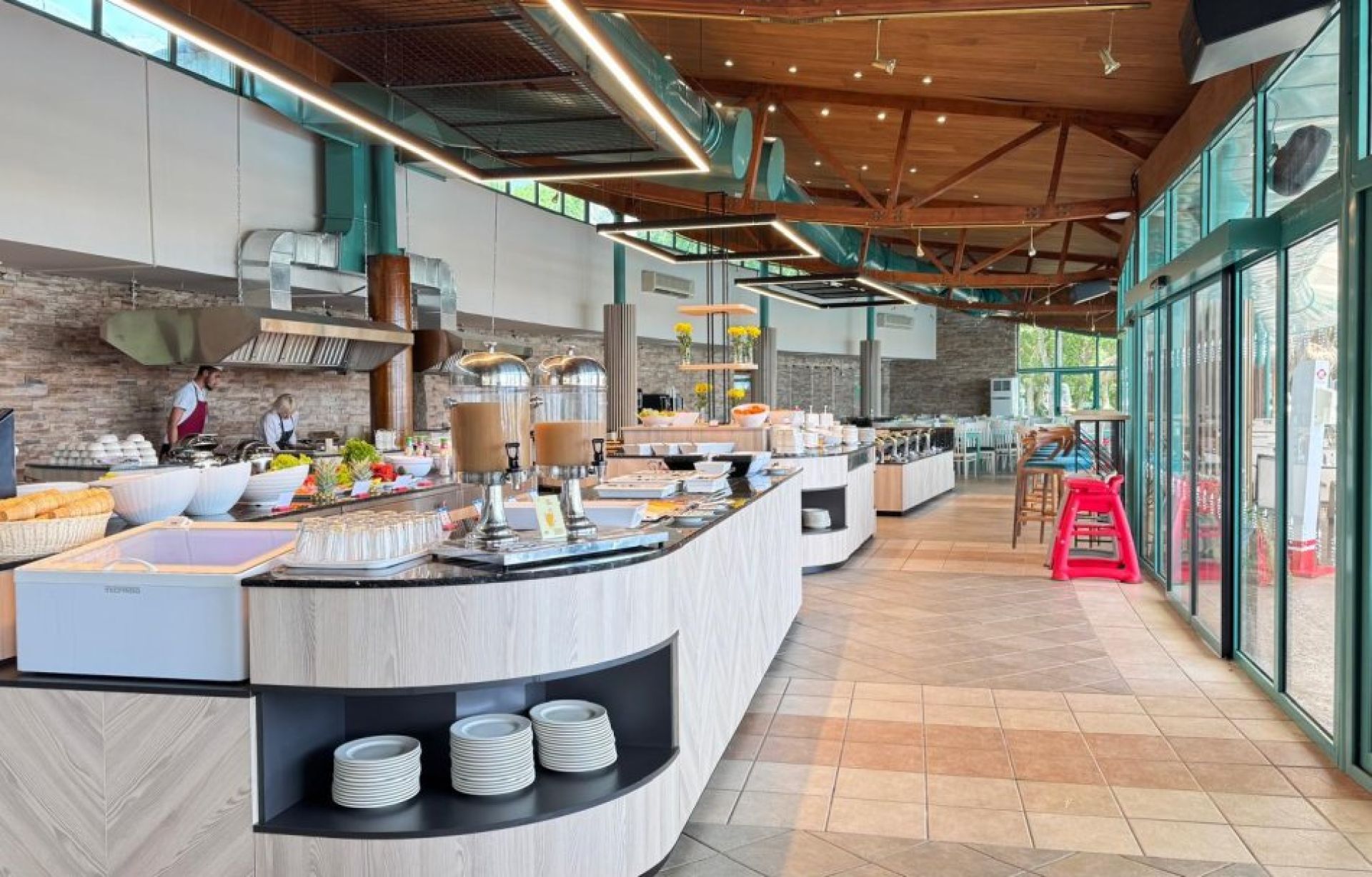 Закуската, обядът и вечерята се сервират на бюфет, с възможности за ястия приготвени на място.