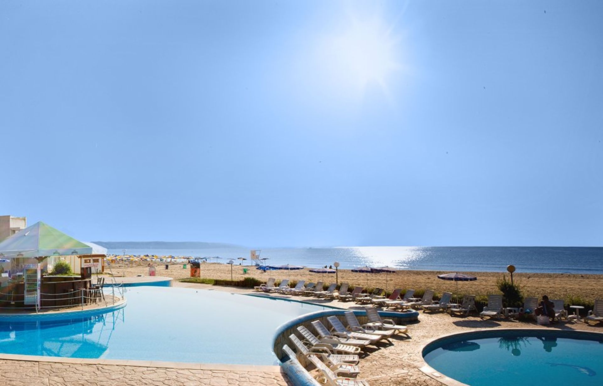 Гостите могат да използват шезлонги и чадъри в зоната на хотела, включени в All Inclusive пакета (обикновено от третия ред към морето). Плажът предлага спокойна и живописна атмосфера, а красивата комбинация от морска вода и близкия природен резерват „Балтата“ го прави идеално място за релакс и почивка на открито.