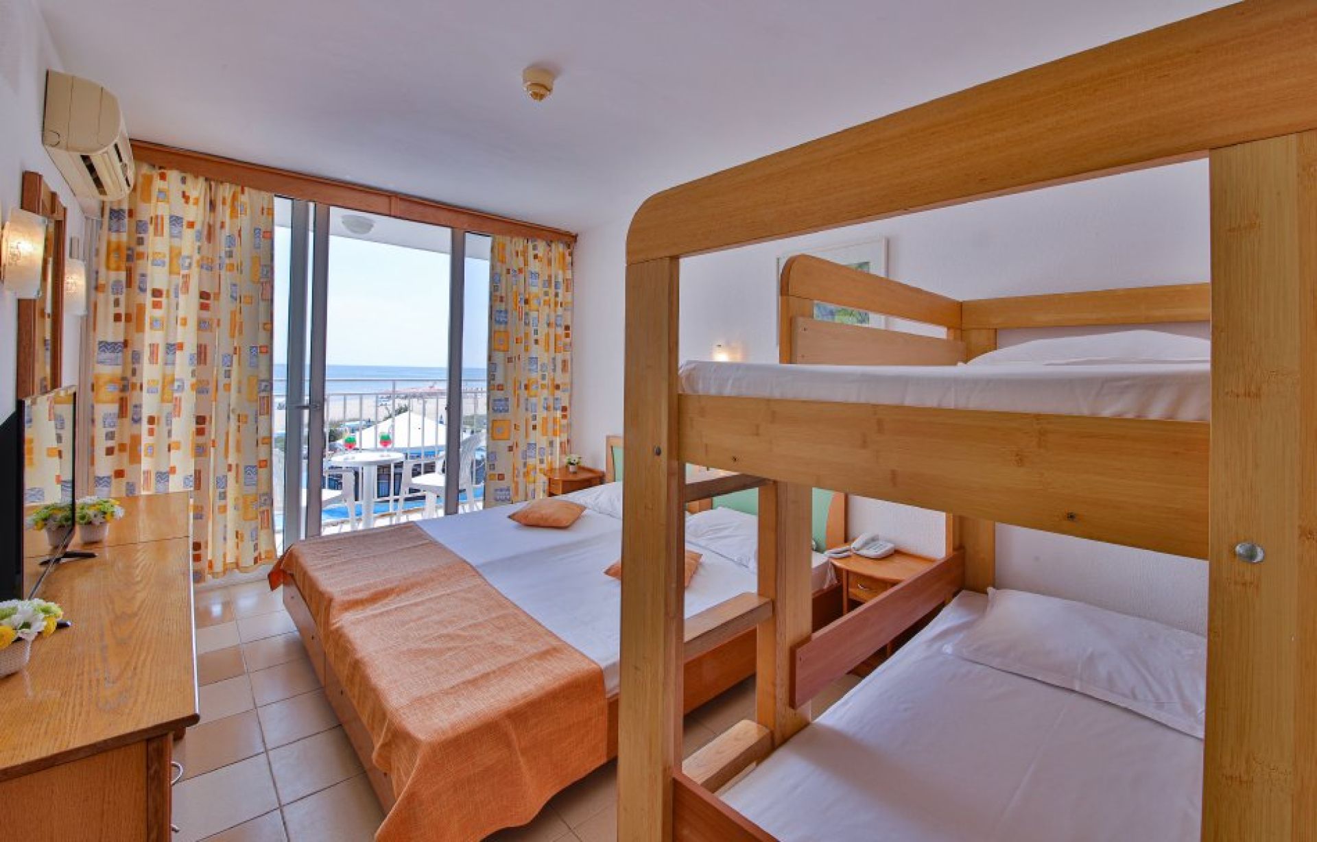 Хотелът предлага комфортно настаняване в двойни стаи и апартаменти с климатик, балкон, телевизия и всички необходими удобства за ваканция на море.