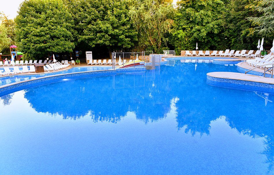 Комплекс Villas Vita Park предлага спокойна зона за отдих с открит басейн, подходящ за възрастни и деца, с шезлонги и чадъри около него. Басейнът осигурява възможност за релакс и почивка без да се налага да напускате комплекса.