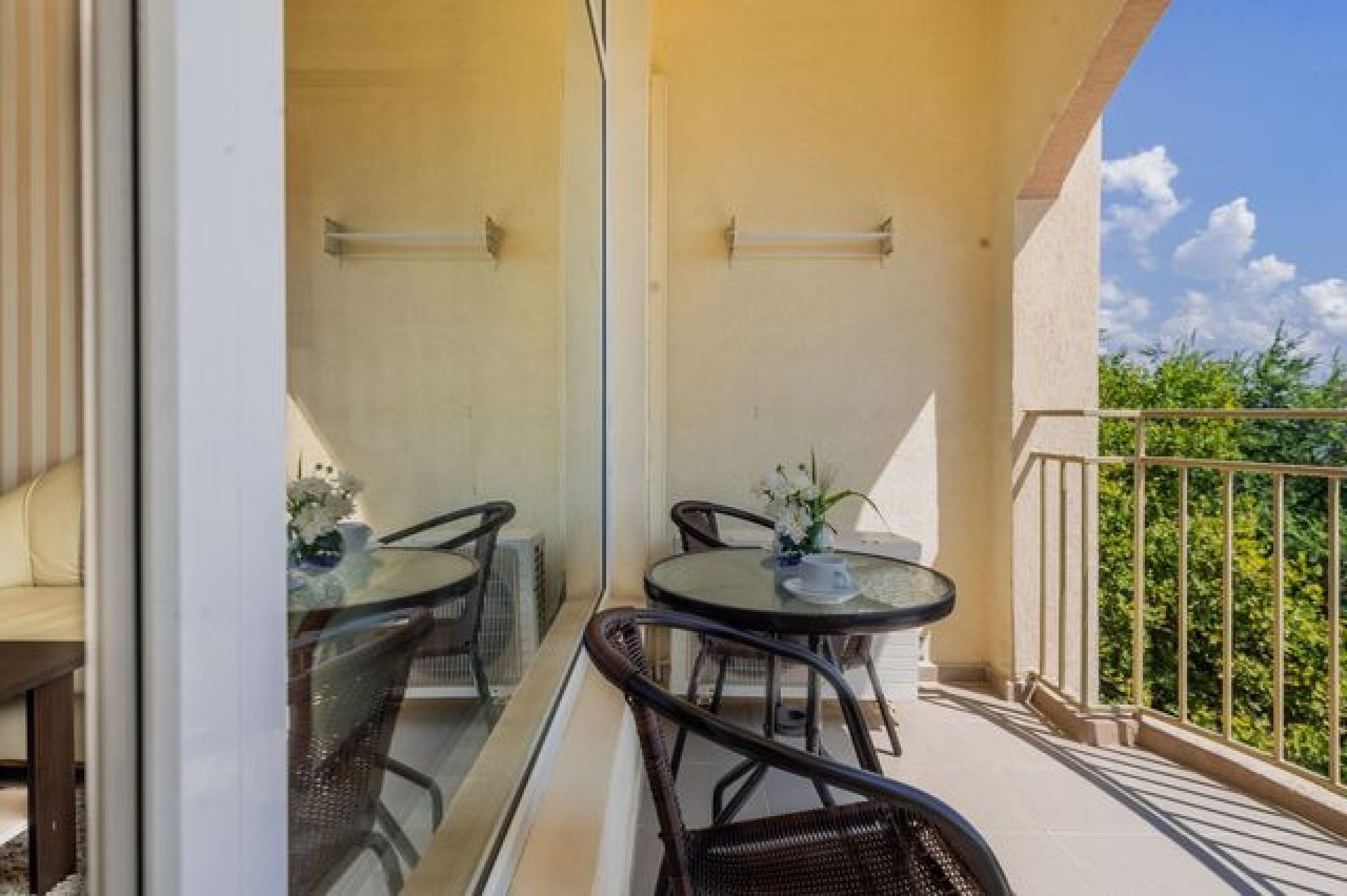 Хотелът е разположен буквално на плажа (около 20–25 м от морската ивица) и до главната крайбрежна алея на курорта Златни пясъци, с лесен достъп до магазини, заведения, развлечения и транспортни връзки. Центърът на курорта е на около 300 м пеша.