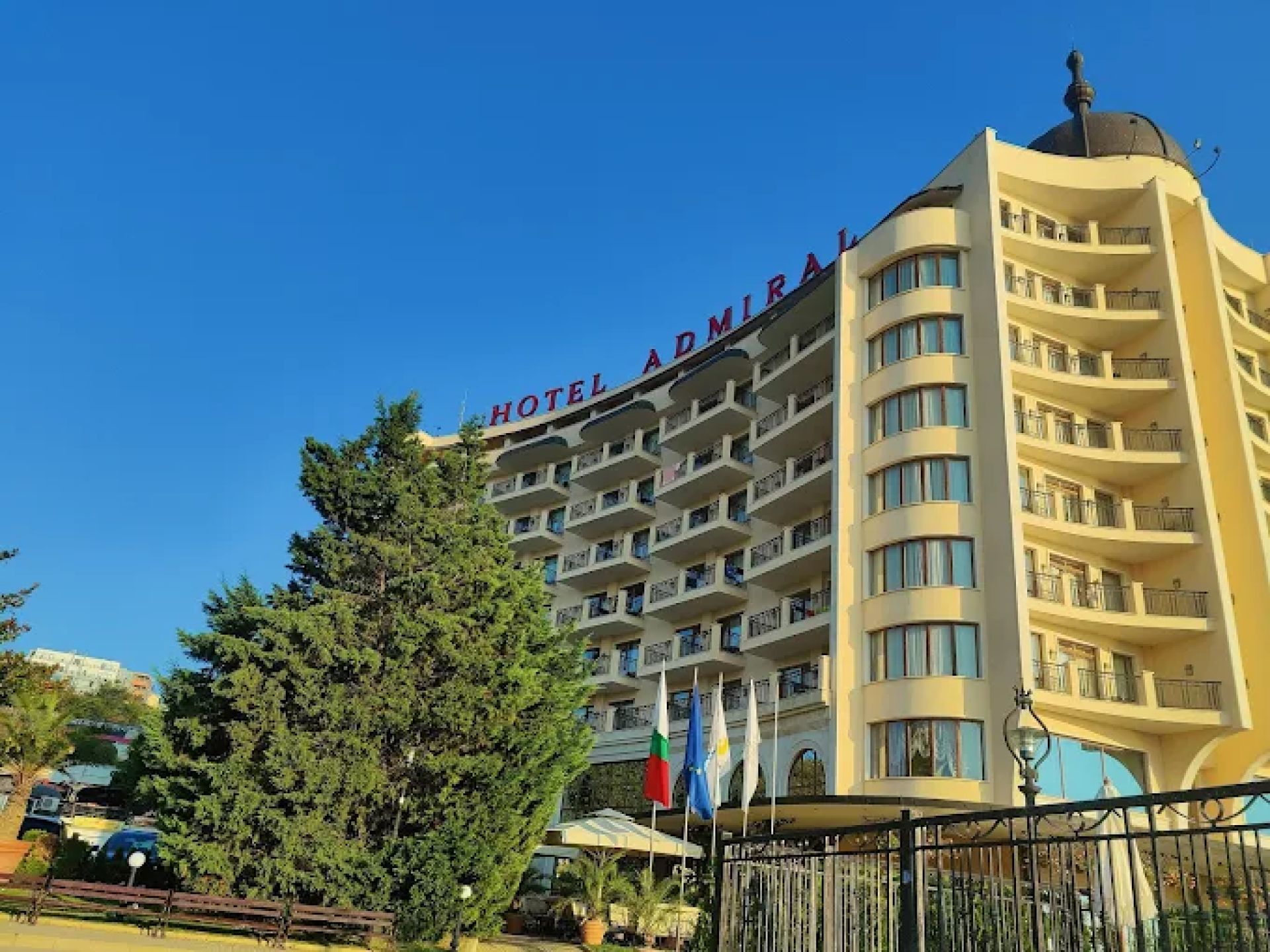 Hotel Admiral 5* е луксозен хотел на първа линия в курорта Златни пясъци, съчетаващ висок стандарт на обслужване, модерни удобства и директен достъп до частен плаж. Хотелът впечатлява с изискан интериор, разнообразие от ресторанти и барове, богати развлекателни програми и СПА услуги за релакс и възстановяване.
