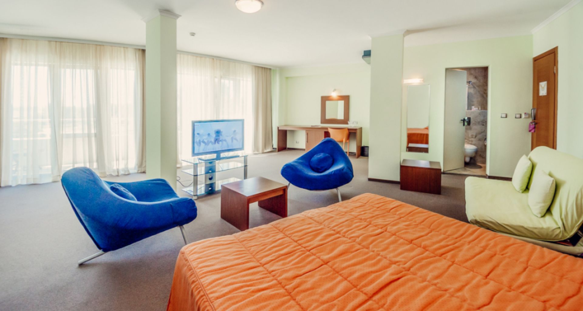 Двойни стаи с балкон и санитарен възел (душ, WC, сешоар, телефон), оборудвани със сателитна телевизия, телефон, Wi-Fi /безплатен/, сейф /безплатен/, минибар и електрическа кана