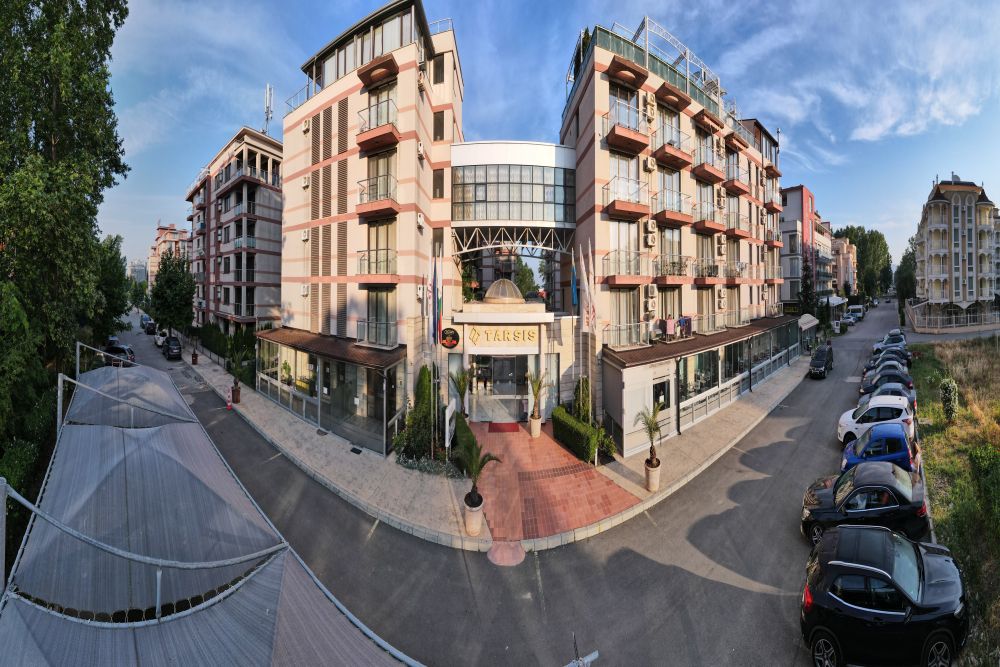 Хотел Tarsis Club е разположен в зелена и спокойна част на курорта Слънчев бряг, предлагаща тишина и релакс, въпреки че не е директно на плажа. Плажът и морето са на около 400–500 м разстояние, което е удобно пеша (≈5–7 минути).
