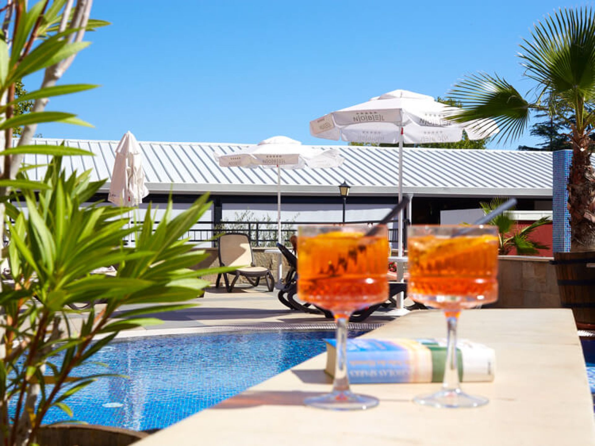 Вътрешен отопляем басейн за релакс през по‑прохладните дни.