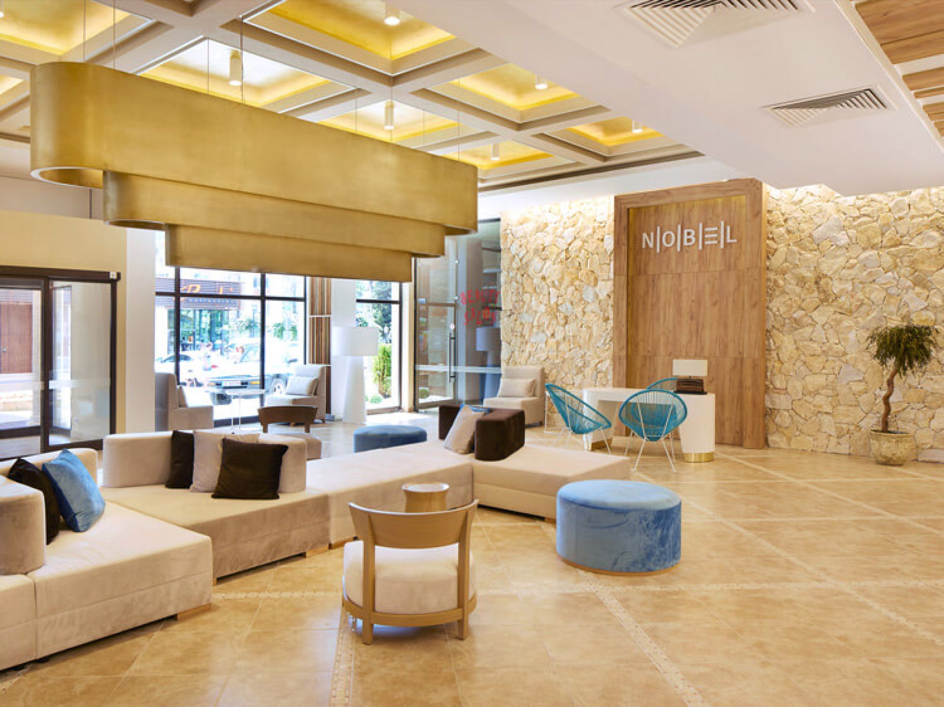 Hotel Nobel 4★ е четиризвезден хотел в курорта Слънчев бряг, отлично подходящ както за семейни почивки, така и за двойки и групи туристи. Хотелът е напълно реновиран и предлага Ultra All Inclusive програма, удобства за релакс, развлечения за деца и възрастни и приятна атмосфера на море.