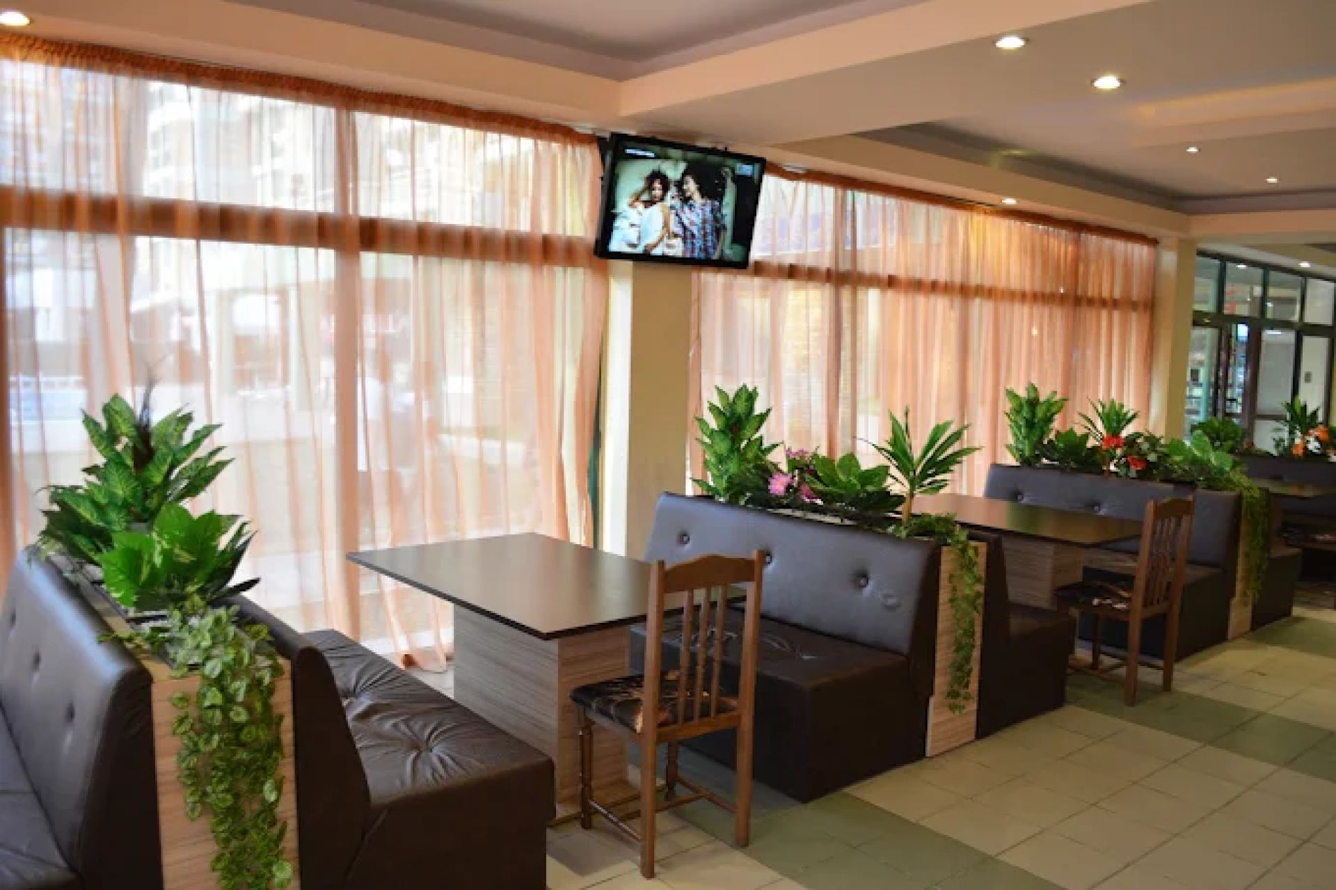 Хотелът разполага с основен ресторант, където се сервира закуска (BB) или закуска и вечеря (HB) – в зависимост от избрания тип резервация. Менюто обикновено е по‑прост, но достатъчен за базово хранене.