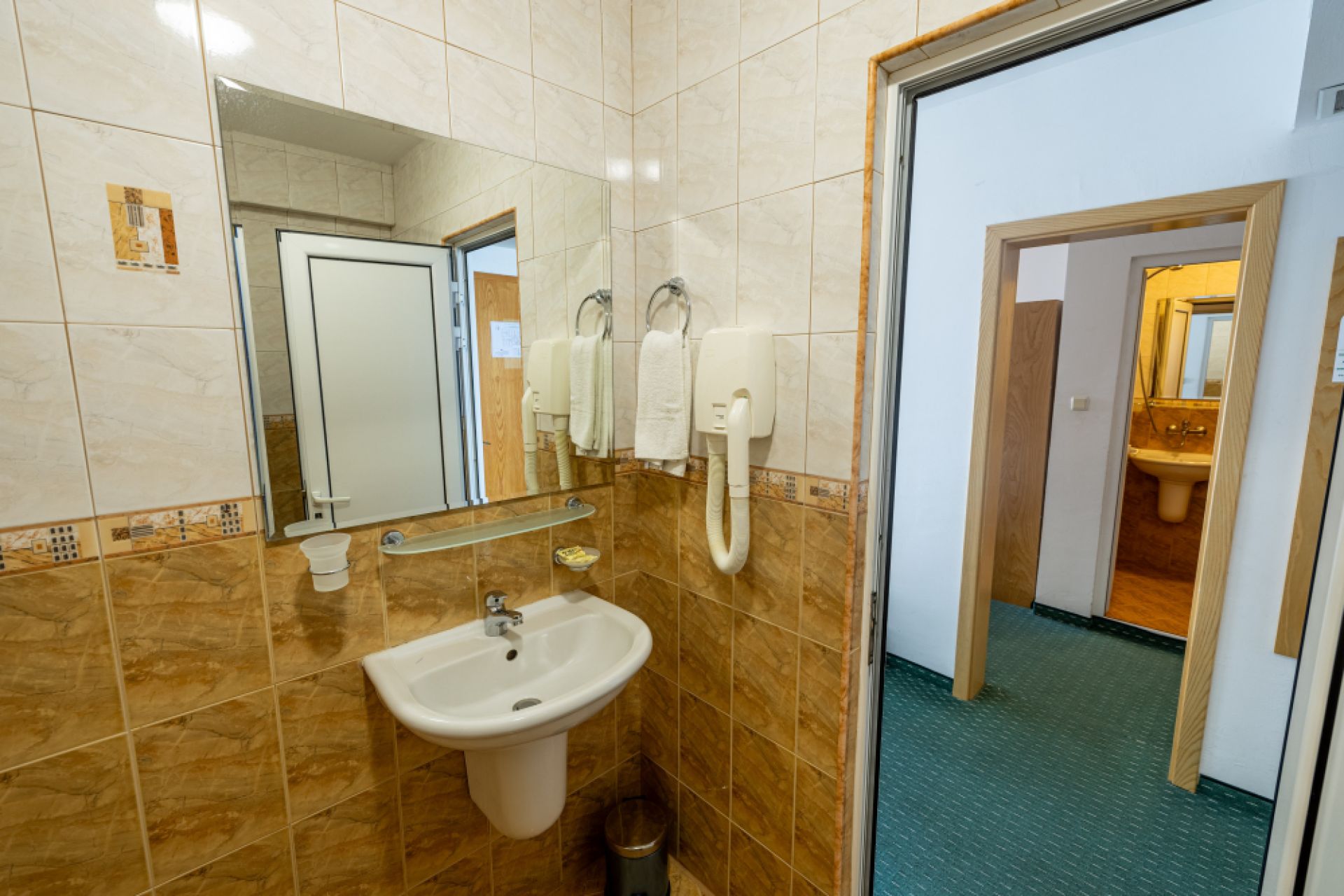 Баня: Собствен санитарен възел с душ или вана и сешоар.