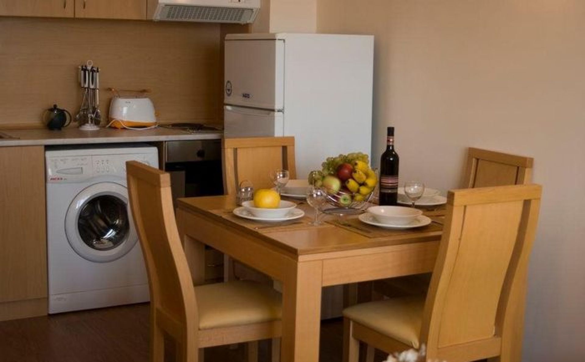 Кухненски бокс: Напълно оборудвана миникухня (хладилник, микровълнова печка/котлони, съдове и прибори), което дава възможност за готвене.