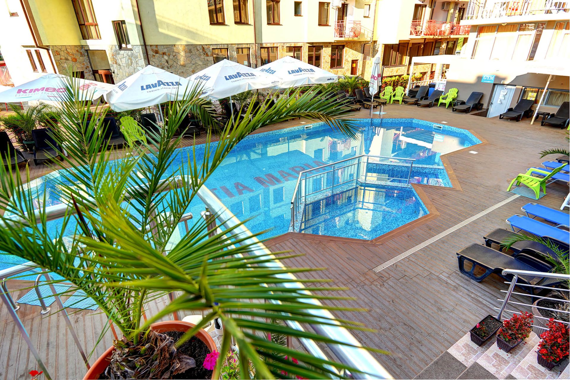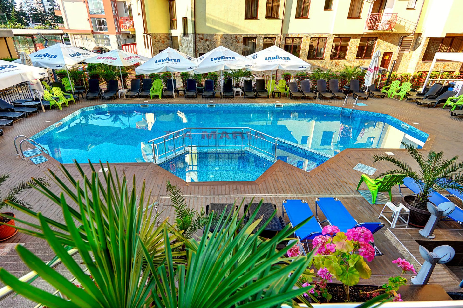 сезонен открит басейн със зона за слънчеви бани и детска част