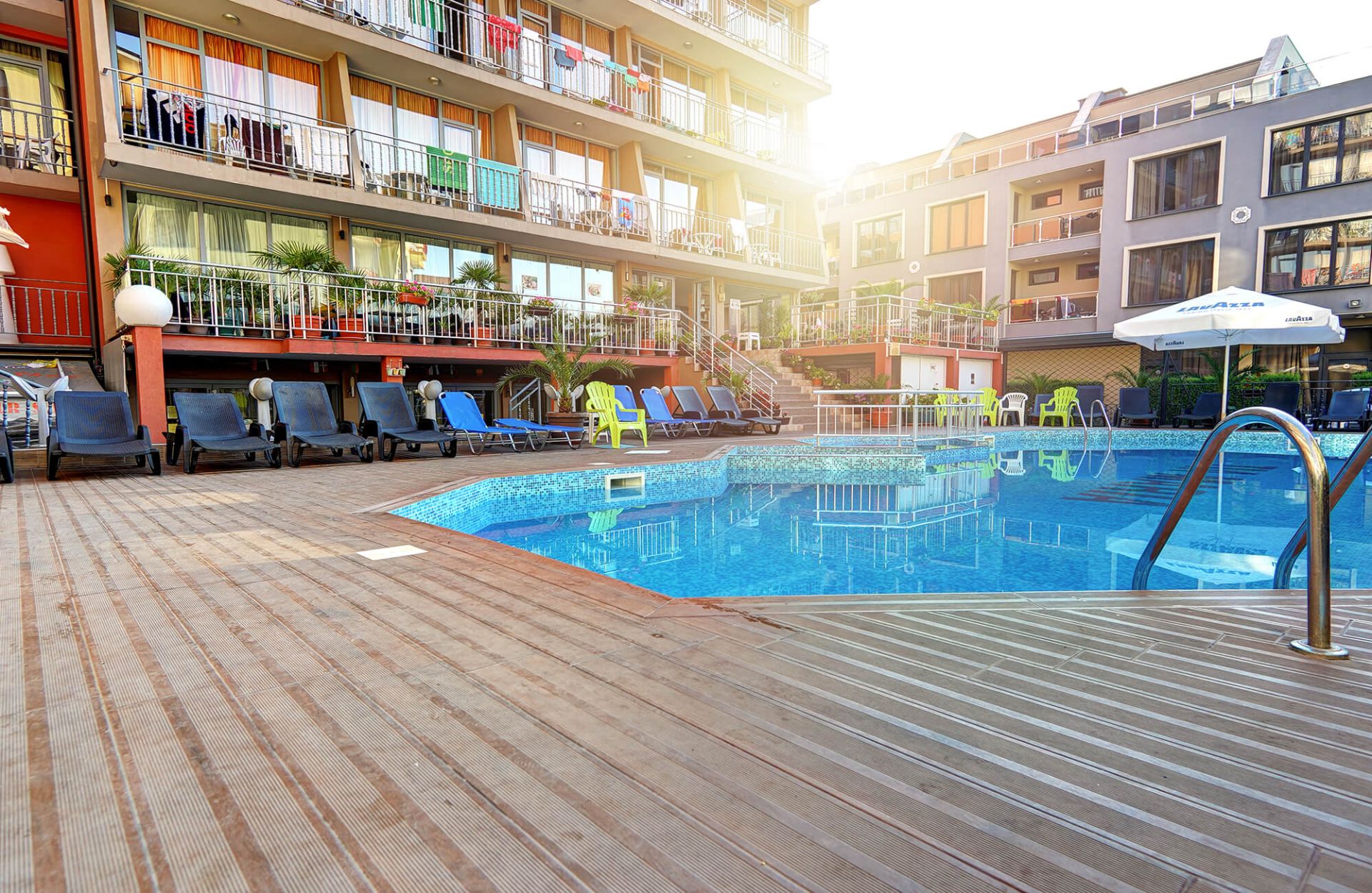 чадъри и шезлонги до басейна