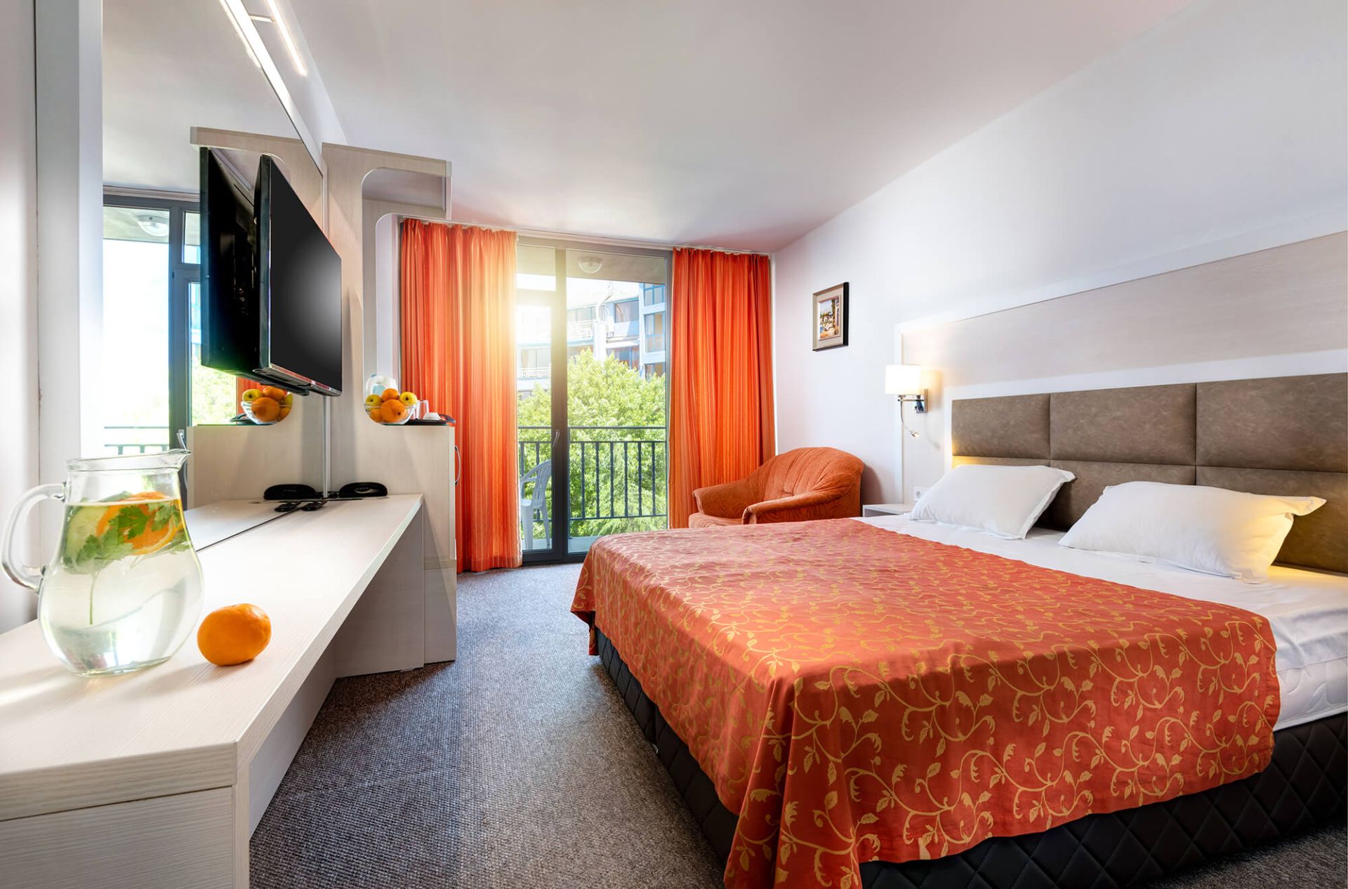 Хотелът разполага със 199 стаи, оборудвани с: