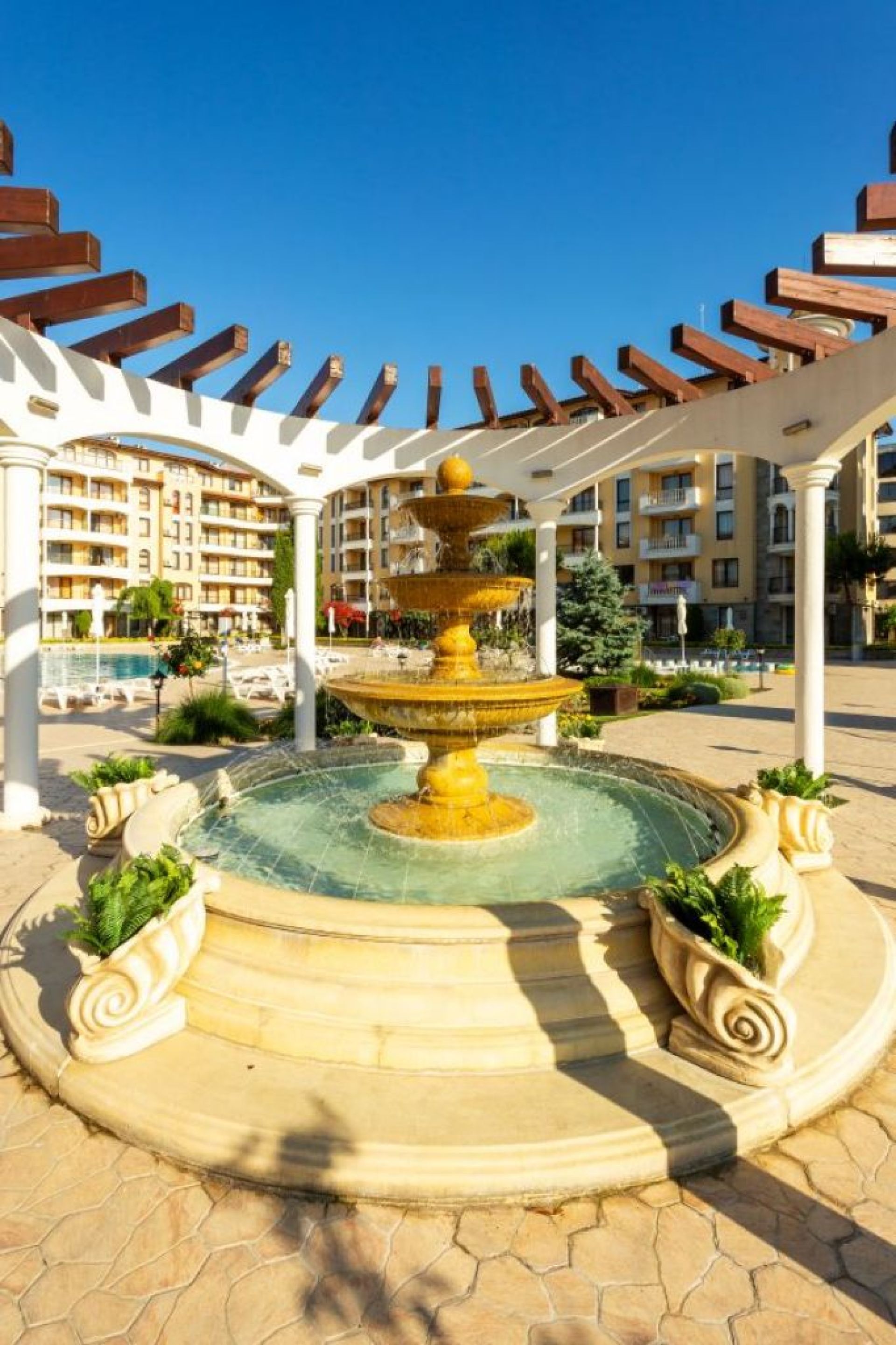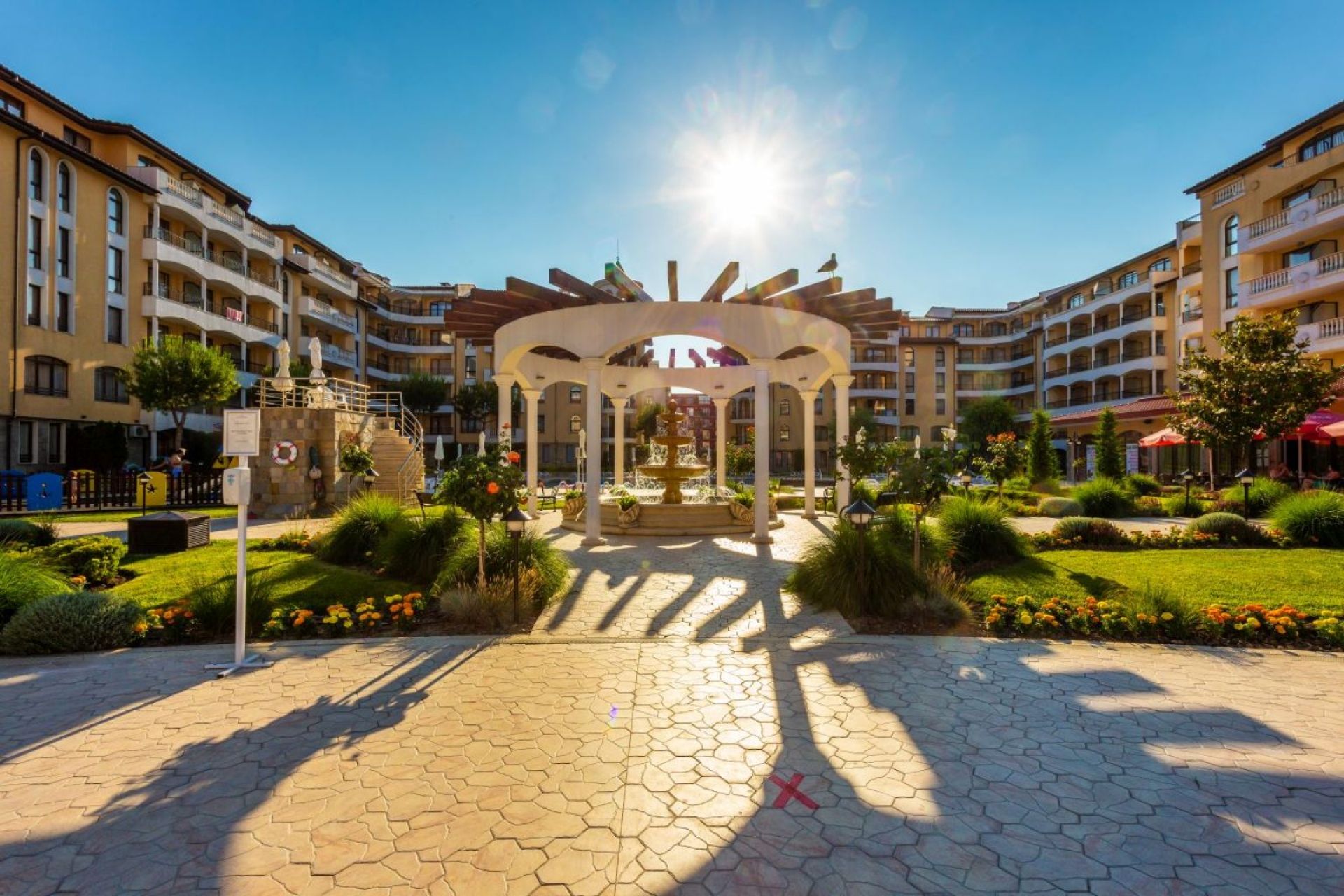Royal Sun е голям ваканционен комплекс с категория 3★, който предлага усещане за спокойна, но пълноценна почивка в сърцето на един от най‑популярните черноморски курорти. Хотелът представлява комплекс от студиа и апартаменти, идеални за семейства, двойки или групи приятели, които искат собствено пространство, без да жертват удобствата на традиционния хотел. Пространството се чувства по‑скоро като свой собствен „дом на море“ с удобства, към които често се добавят активности, басейни и зелени градини.