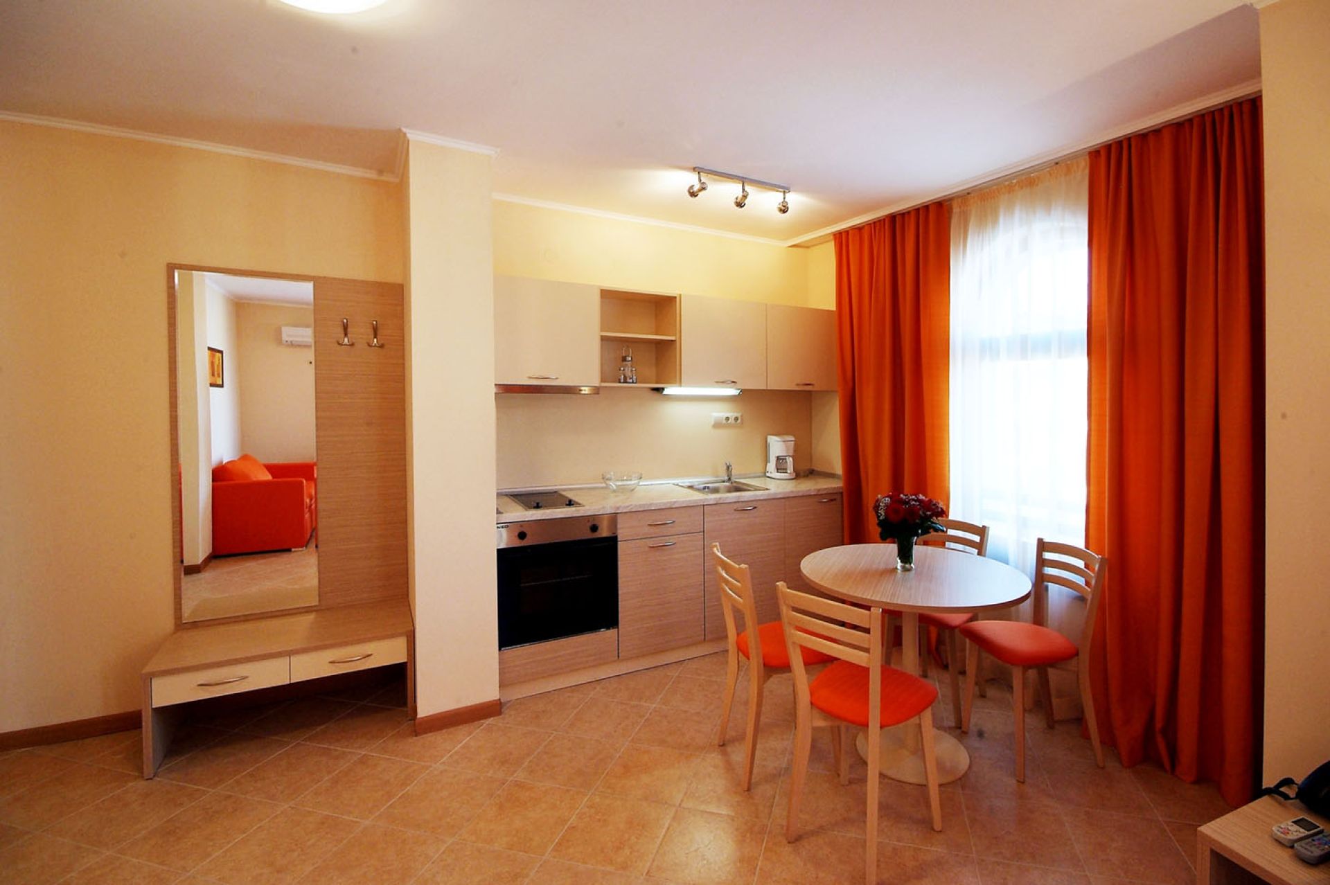В близост до комплекса има ресторанти и кафенета, където гостите могат да опитат както традиционна българска кухня, така и международни ястия. Много от апартаментите разполагат с кухненски бокс, което позволява на гостите да приготвят сами храната си, ако желаят по-самостоятелна почивка.