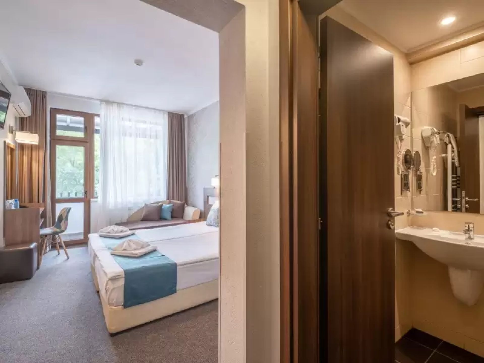 Всички помещения са модерно обзаведени и оборудвани с индивидуален климатик, отоплителна инсталация, сейф, хладилник-минибар, LCD телевизор с IP телевизия, телефон, баня с душ-кабина (2 от стаите са с вани) и сешоар.