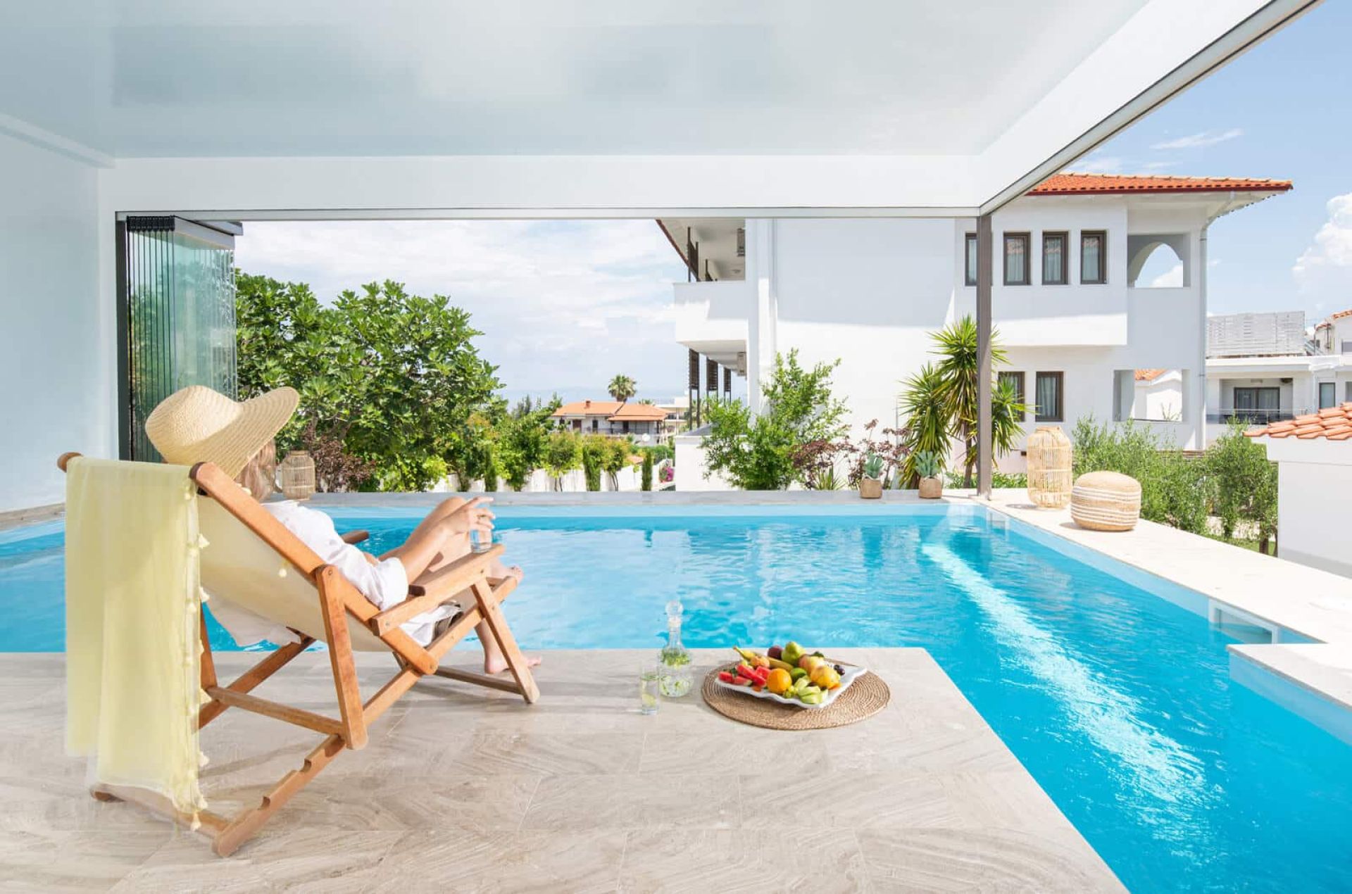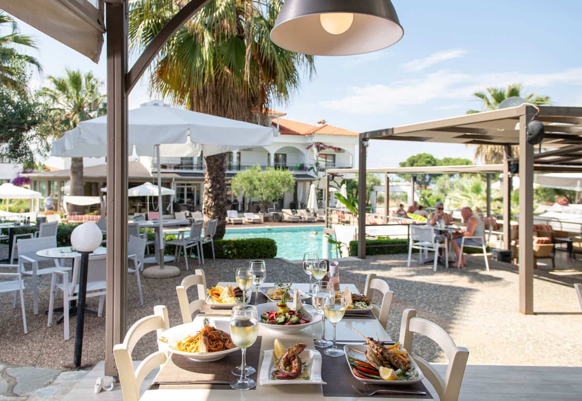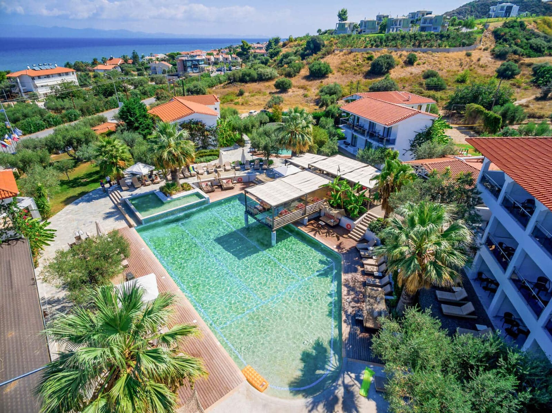 Намира се между селищата Ханиоти (1 км) и Пефкохори (500 м), на 115 км от летище Македония в град Солун.