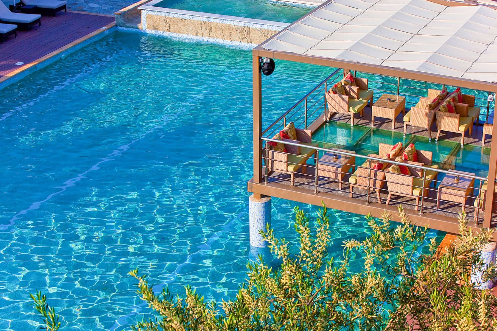 отелът разполага с 1 основен,1 а ла карт Ambrosia (срещу заплащане) и 1 плажен ресторант Mare Nostra (с предварителна резервация), основен бар, басейна бар, басейн с прясна вода, закрит басейн с джакузи, СПА (срещу заплащане), ароматерапия и масажи (срещу заплащане), Wi-Fi в общите части и в стаите, лекар по заявка, паркинг (безплатен), сейф, химическо чистене/пералня (срещу заплащане), сауна и парна баня (срещу заплащане), градина, автобусна спирка до хотела.